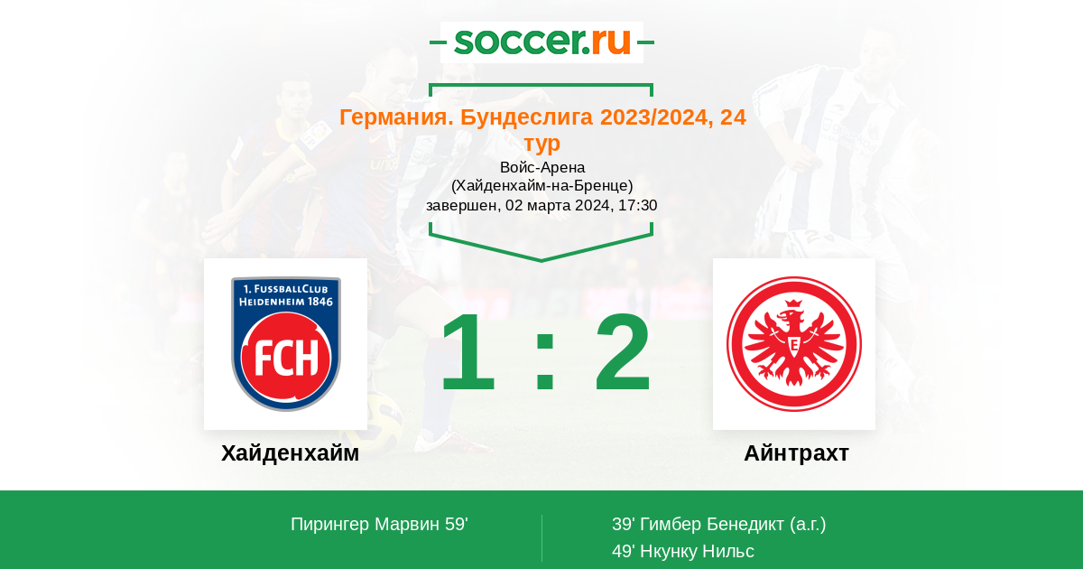 Протокол матча Хайденхайм против Айнтрахт