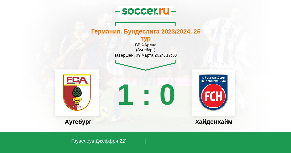 Протокол матча Аугсбург против Хайденхайм