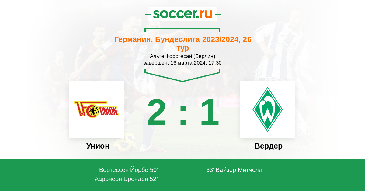Протокол матча Унион против Вердер