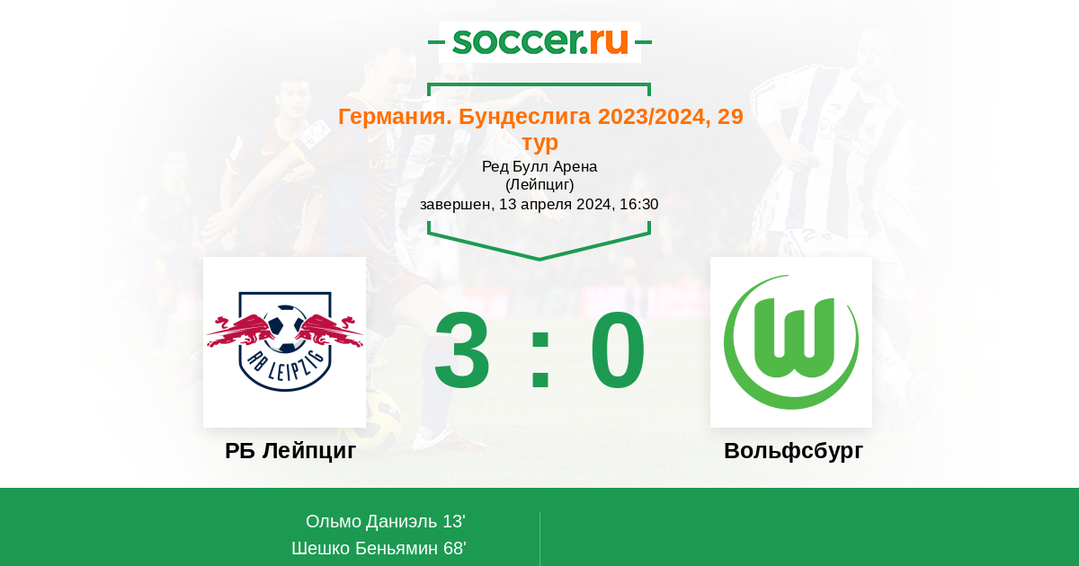 13' (1:0) Ольмо Даниэль (7) (Шлагер Ксавер (24))