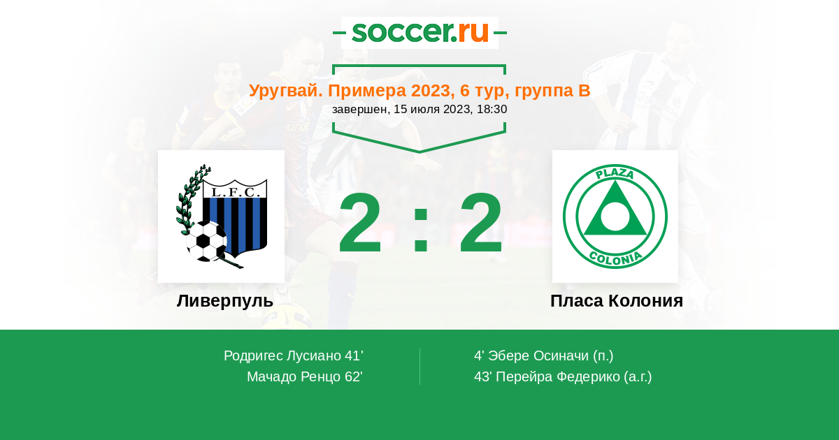 Протокол матча Ливерпуль против Пласа Колония
