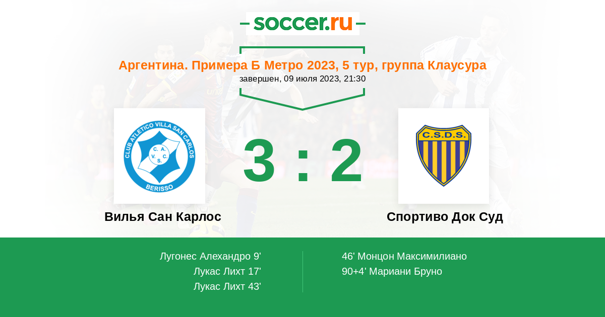 Протокол матча Вилья Сан Карлос против Спортиво Док Суд