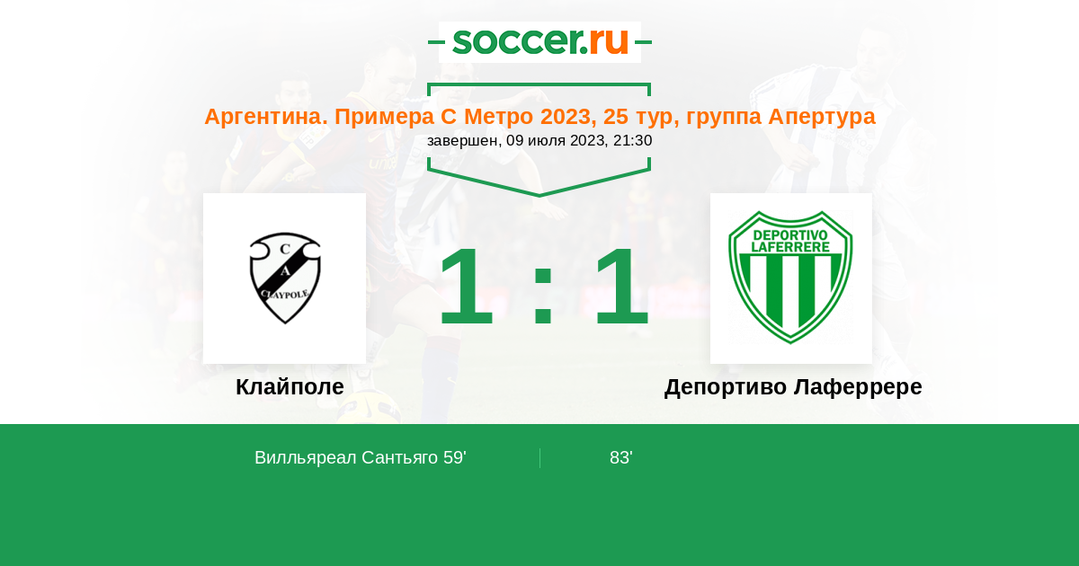 Протокол матча Клайполе против Депортиво Лаферрере