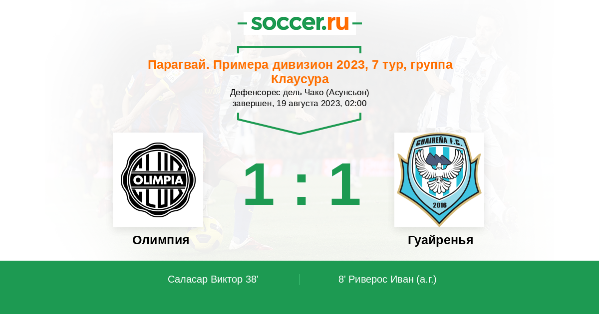 38' (1:1) Саласар Виктор (29) (Баррето Орландо (26))