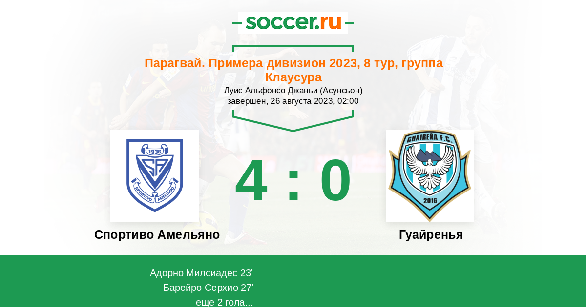23' (1:0) Адорно Милсиадес (8) (Самудио Алехандро (7))