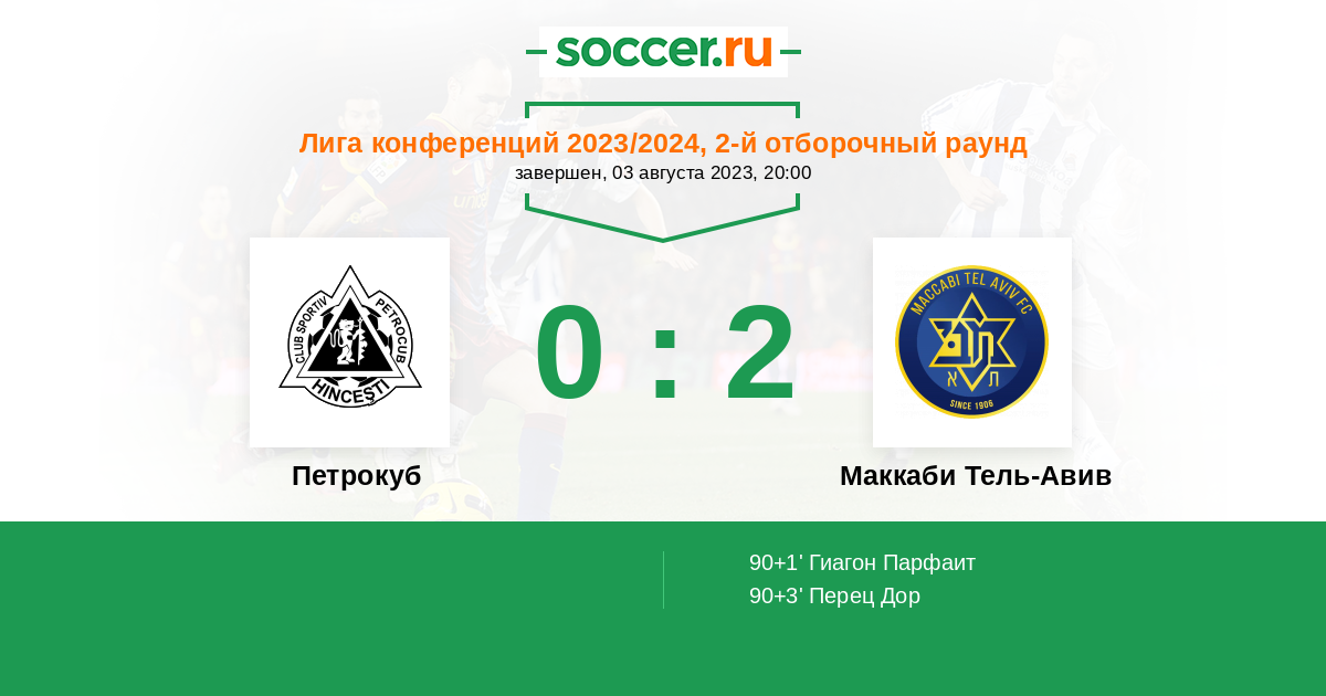 Протокол матча Петрокуб против Маккаби Тель-Авив