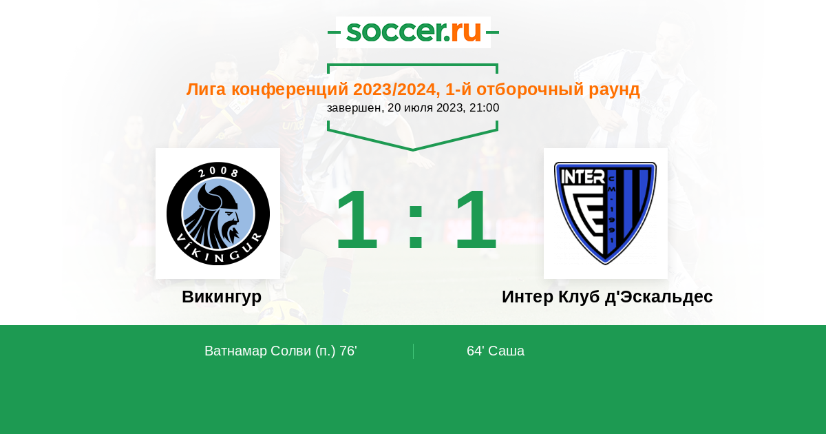Протокол матча Викингур против Интер Клуб д'Эскальдес