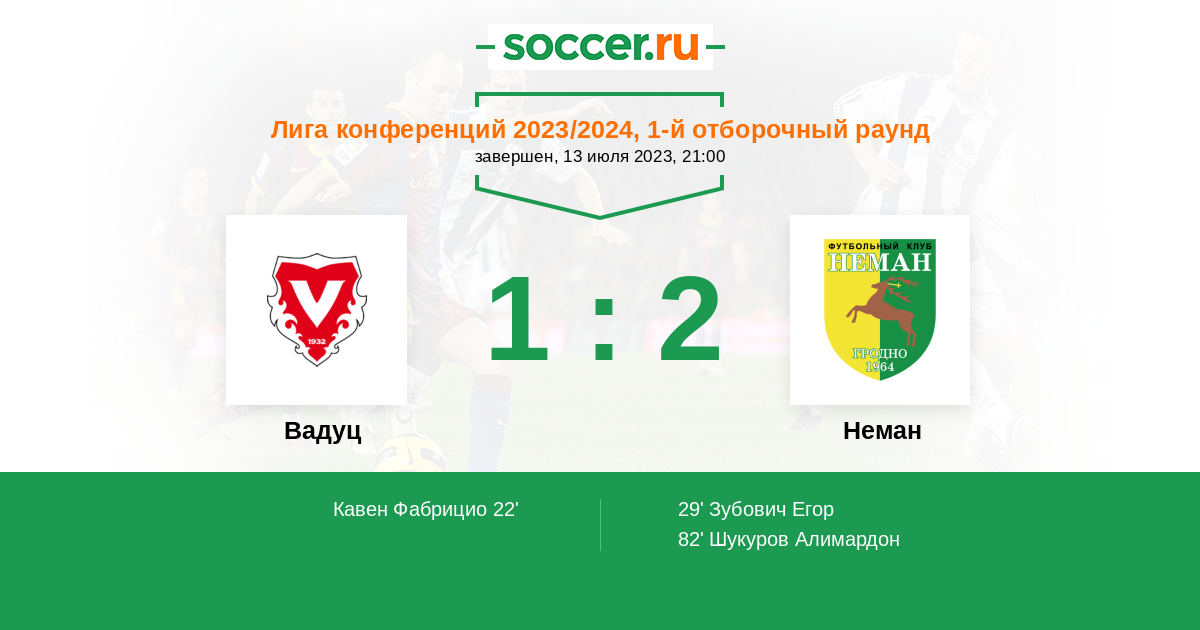 Протокол матча Вадуц против Неман