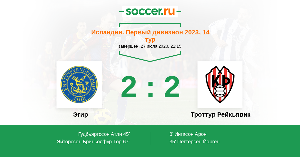 Протокол матча Эгир против Троттур Рейкьявик