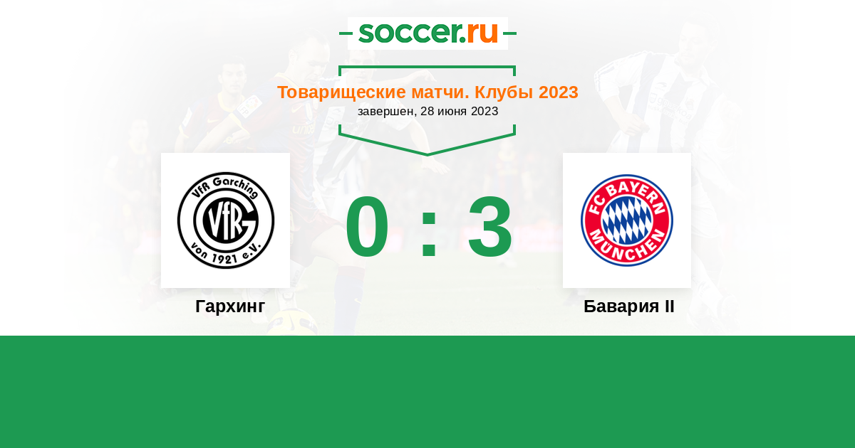 Товарищеские матчи. Клубы 28.06.2023 Гархинг Логотип Гархинг 0:3 Логотип футбольный клуб Бавария II (Мюнхен) Бавария II