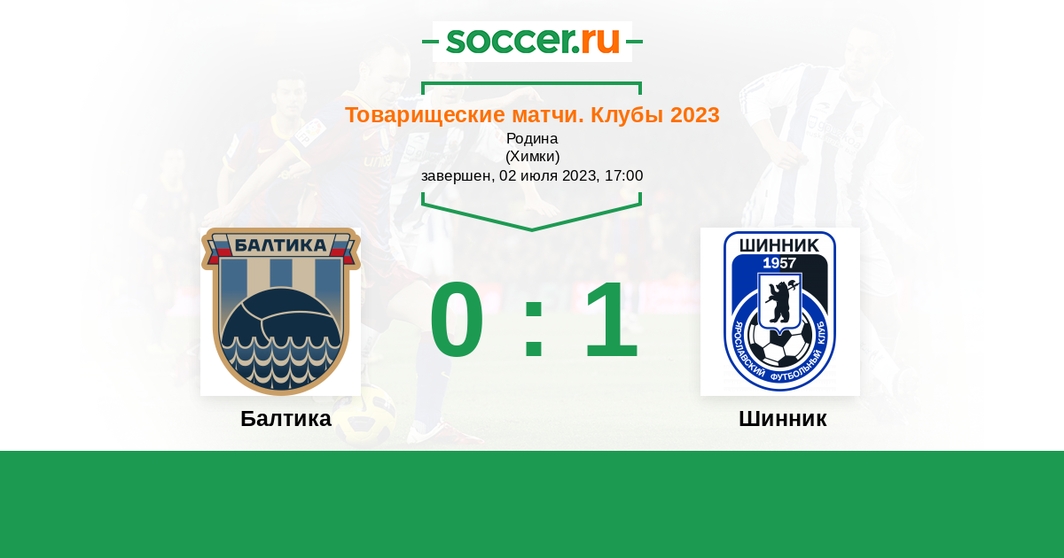 Товарищеские матчи. Клубы 28.06.2018 Балтика Логотип футбольный клуб Балтика (Калининград) 1:1 Логотип футбольный клуб Шинник (Ярославль) Шинник