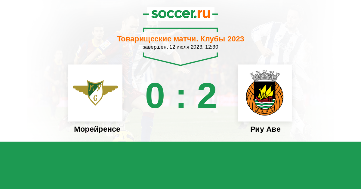 Товарищеские матчи. Клубы 13.07.2024 Риу Аве Логотип футбольный клуб Риу Аве (Вила-ду-Конди) 1:2 Логотип футбольный клуб Морейренcе (Морейра-де-Конегуш) Морейренcе