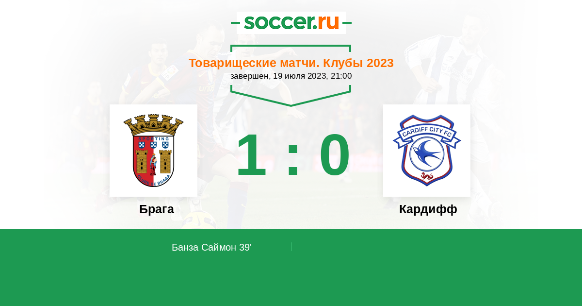 Протокол матча Брага против Кардифф