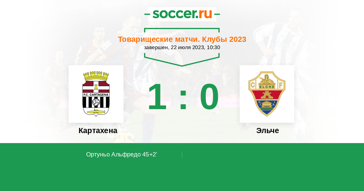 Протокол матча Картахена против Эльче