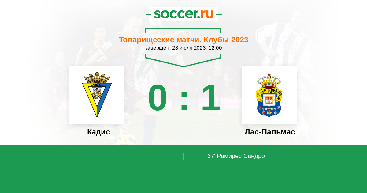 Протокол матча Кадис против Лас-Пальмас