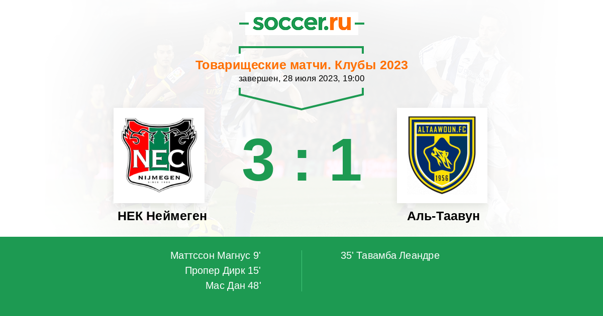 Протокол матча НЕК Неймеген против Аль-Таавун