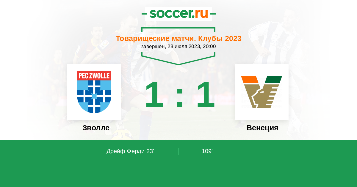 Протокол матча Зволле против Венеция