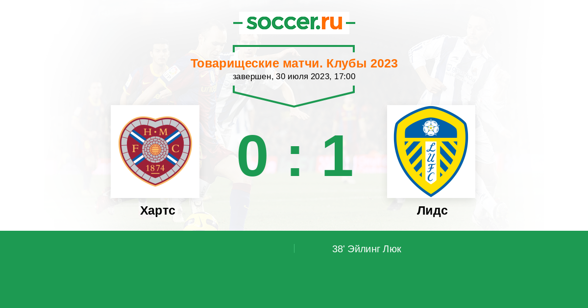 Протокол матча Хартс против Лидс