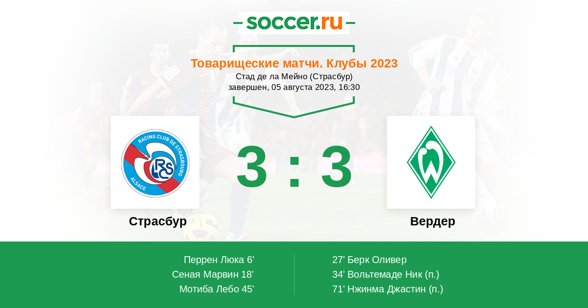 Протокол матча Страсбур против Вердер