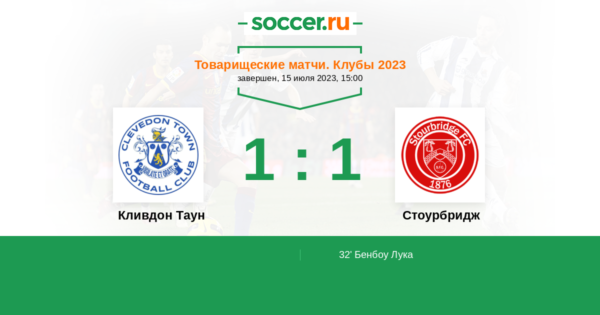 Протокол матча Кливдон Таун против Стоурбридж