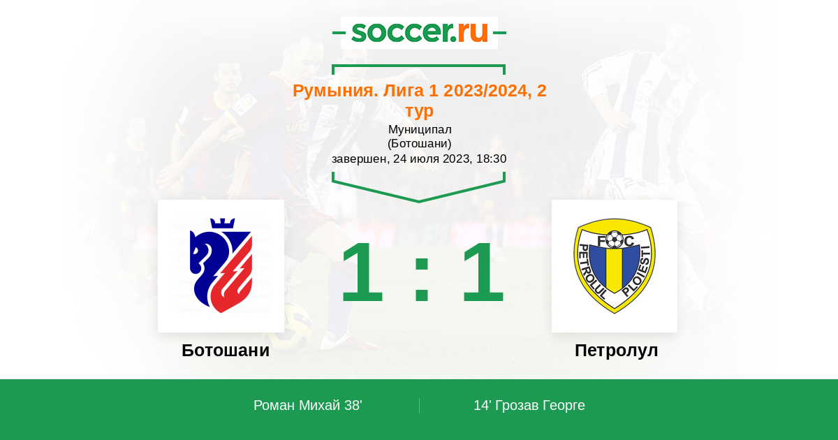 14' (0:1) Грозав Георге (7) (Будеску Константин (10))