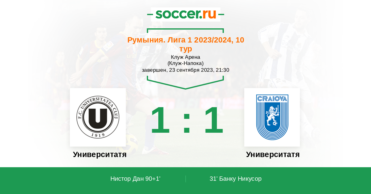 Гол90+1' (1:1) Нистор Дан (10) (Сигали Роберт (96))