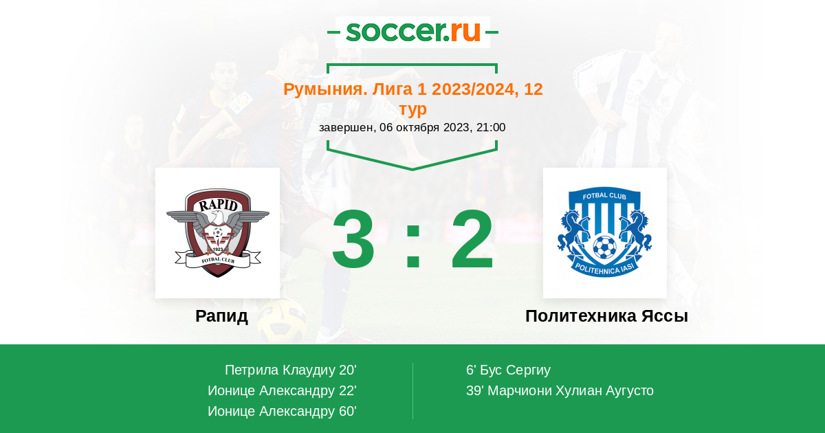 Протокол матча Рапид против Политехника Яссы