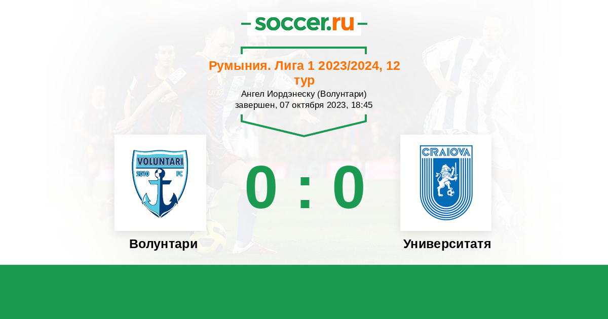 Протокол матча Волунтари против Университатя Крайова