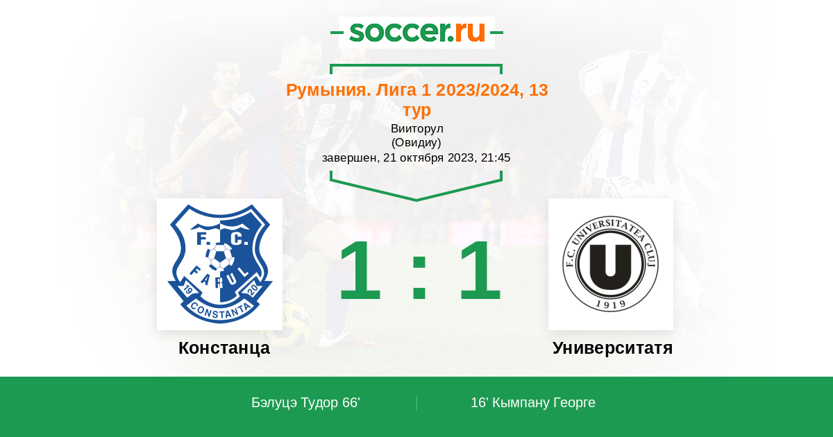 66' (1:1) Бэлуцэ Тудор (6) (Будеску Константин (10))