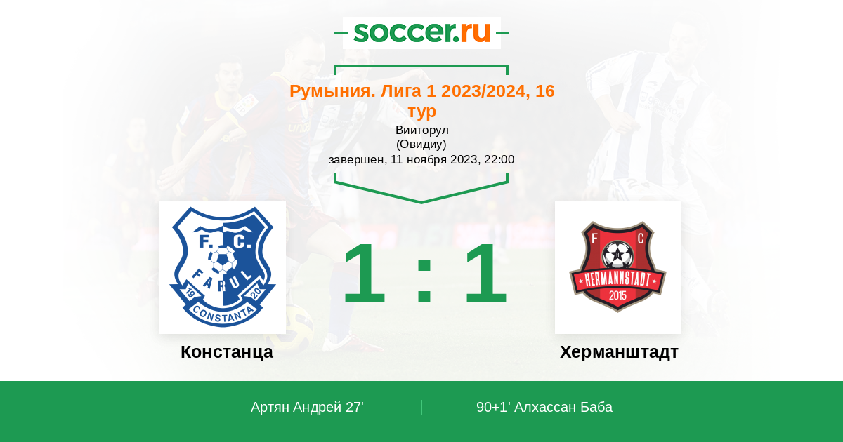 90+1' (1:1) Алхассан Баба (8) (Балауре Силвиу (96))