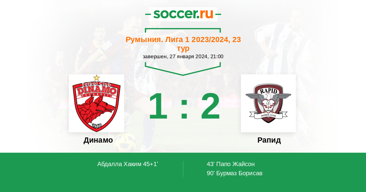 Гол90' (1:2) Бурмаз Борисав (11) (Сэпунару Кристиан (22))