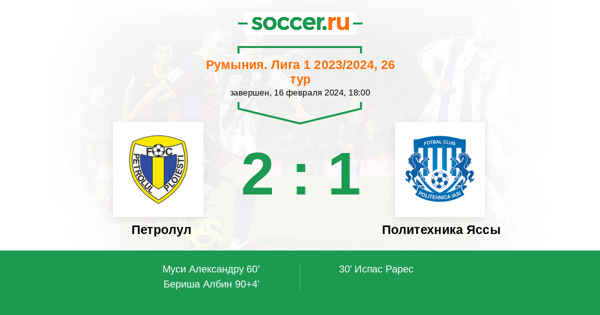 Гол90+4' (2:1) Бериша Албин (9) (Исфан Александру (31))