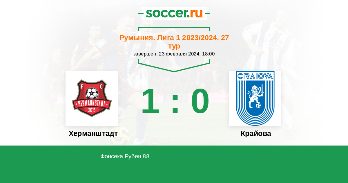 Протокол матча Херманштадт против Крайова