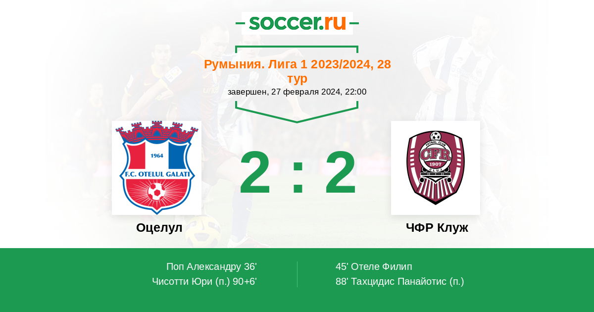 Протокол матча Оцелул против ЧФР Клуж