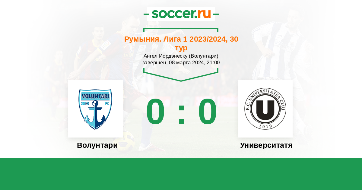 Протокол матча Волунтари против Университатя Клуж