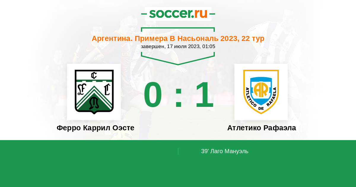 Протокол матча Ферро Каррил Оэсте против Атлетико Рафаэла