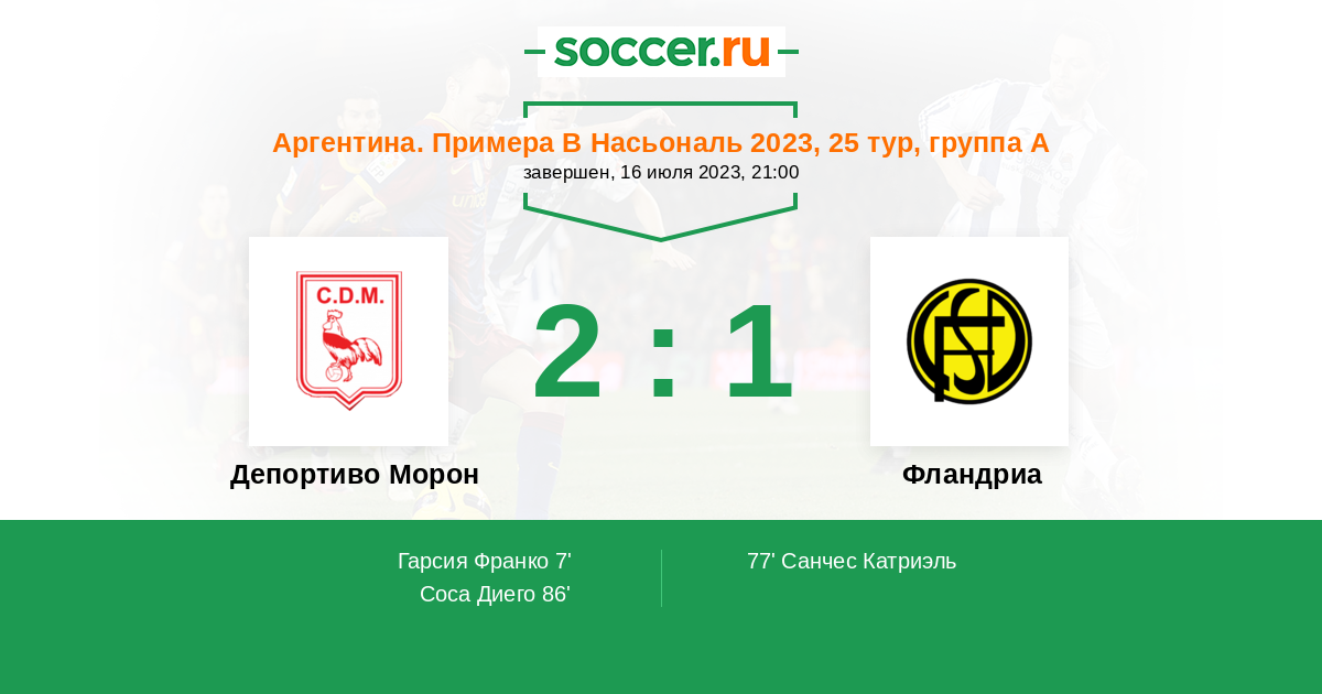 Протокол матча Депортиво Морон против Фландриа