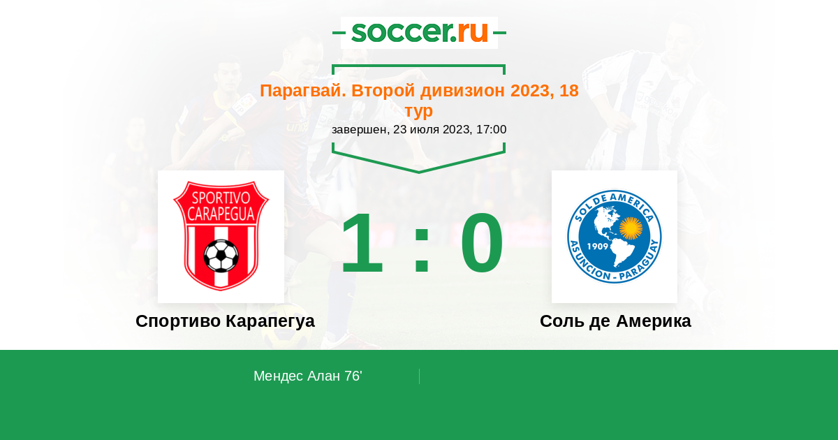 Протокол матча Спортиво Карапегуа против Соль де Америка