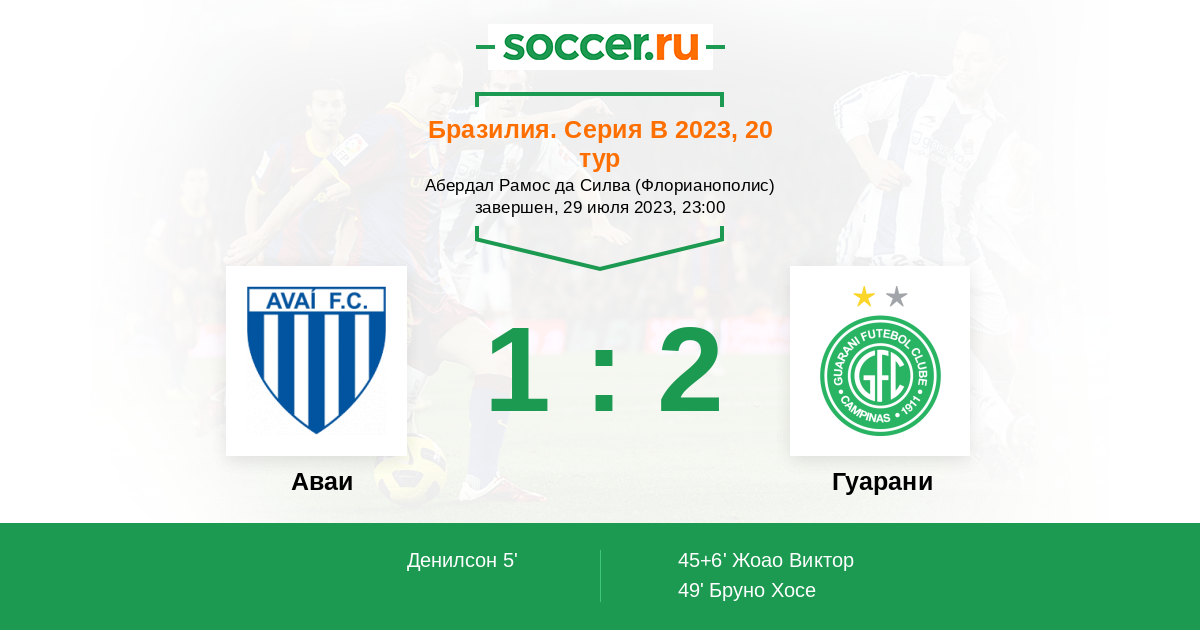 Протокол матча Аваи против Гуарани
