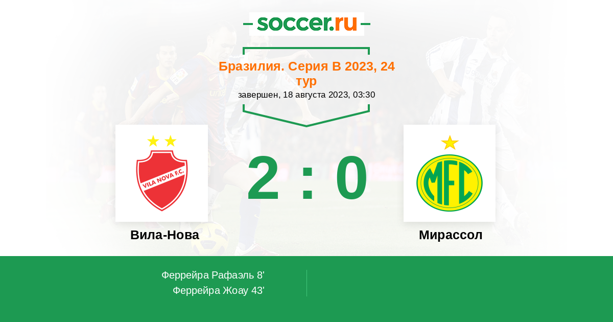 Протокол матча Вила-Нова против Мирассол