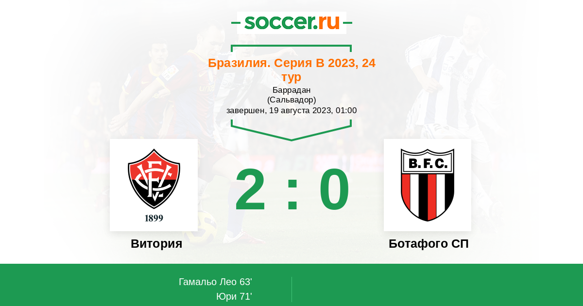 Протокол матча Витория против Ботафого СП