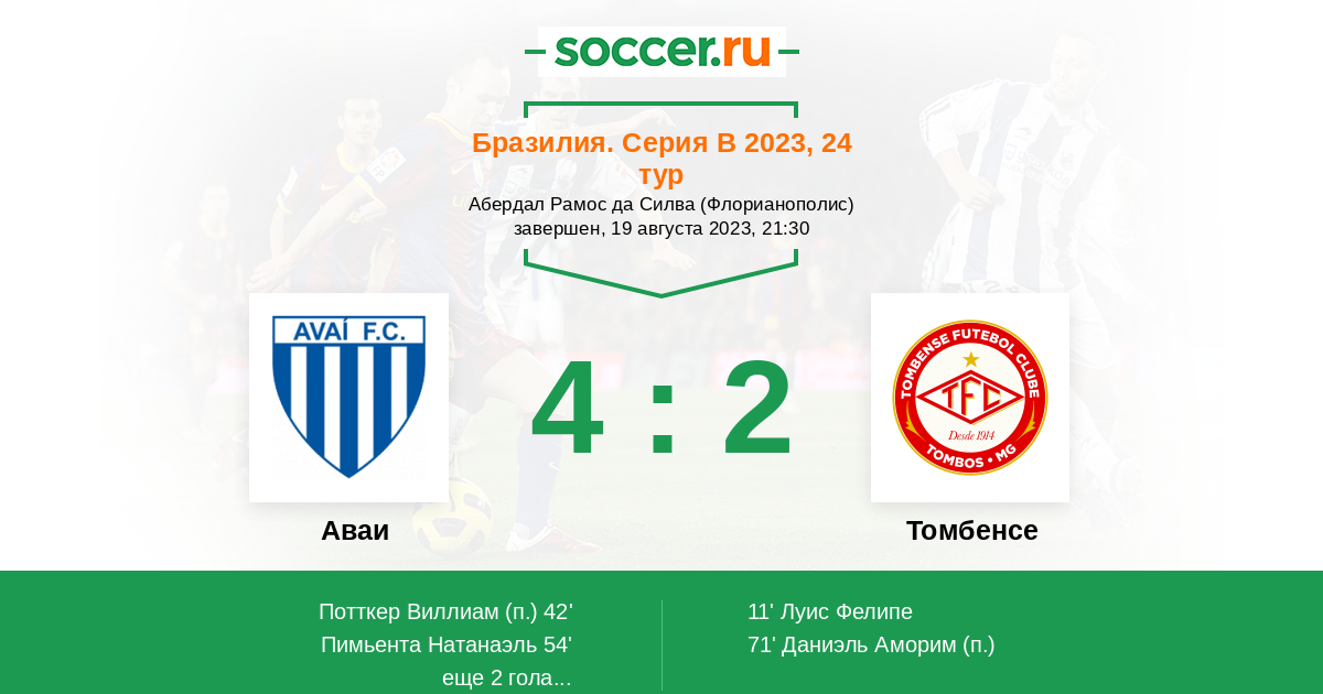 Протокол матча Аваи против Томбенсе