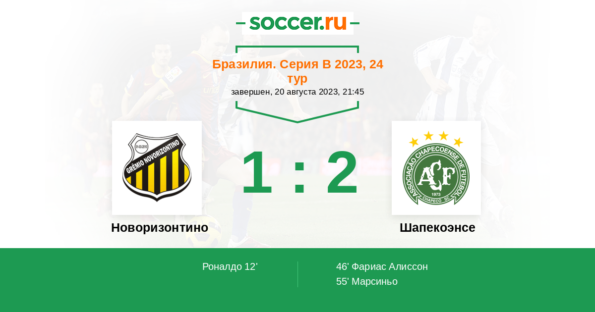 55' (1:2) Марсиньо (29) (де Андраде Кайке Морено (17))
