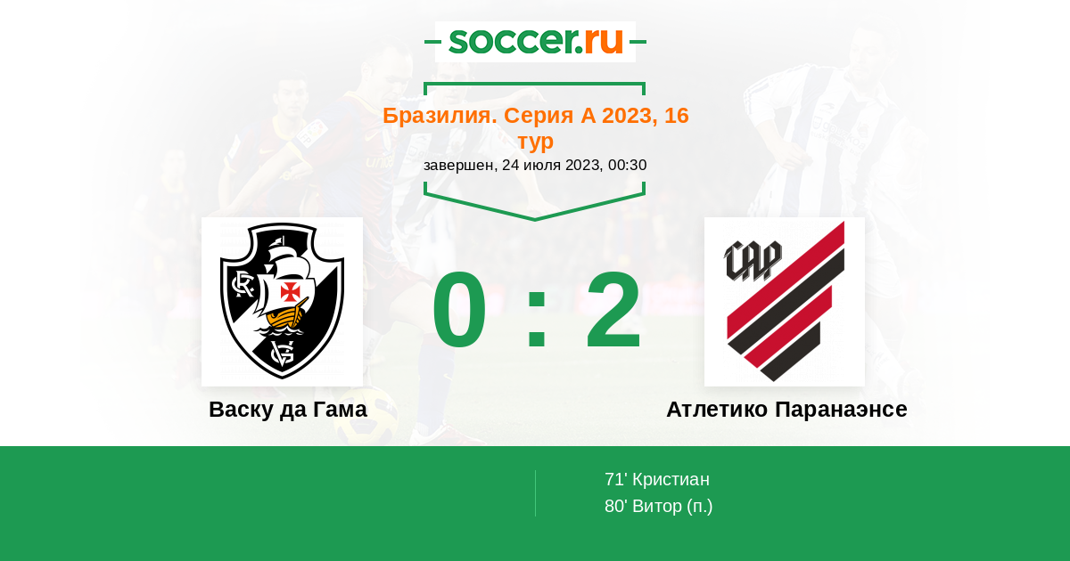 Протокол матча Васку да Гама против Атлетико Паранаэнсе
