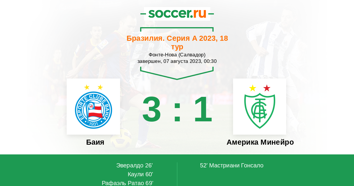 Протокол матча Баия против Америка Минейро