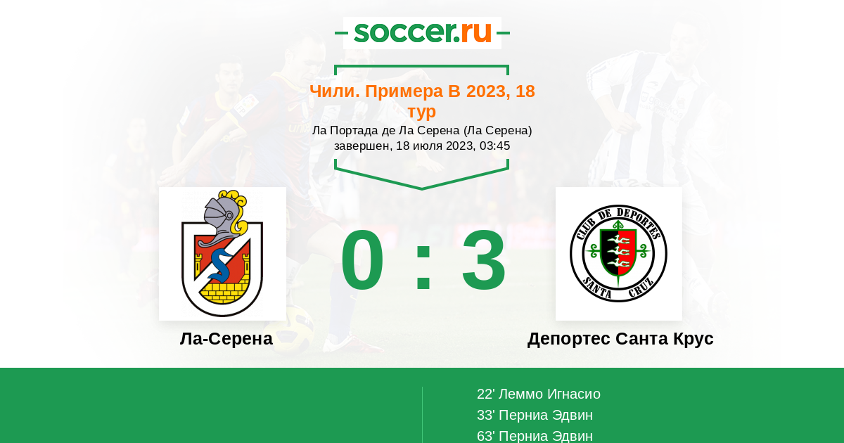 Протокол матча Ла-Серена против Депортес Санта Крус