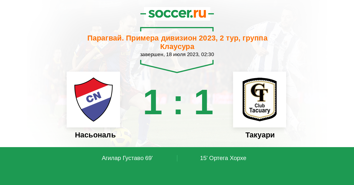 Протокол матча Насьональ против Такуари