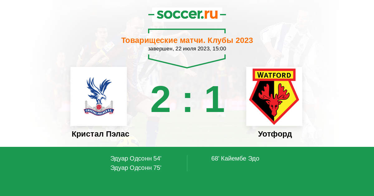 Протокол матча Кристал Пэлас против Уотфорд