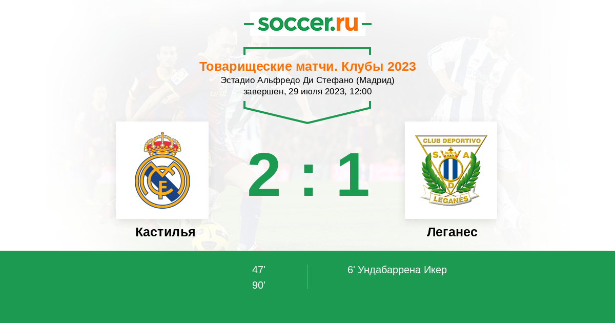 Протокол матча Кастилья против Леганес
