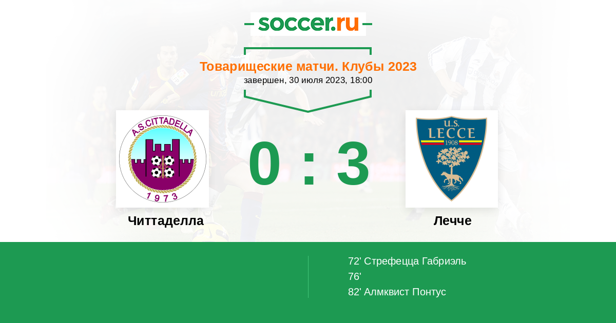 Протокол матча Читтаделла против Лечче